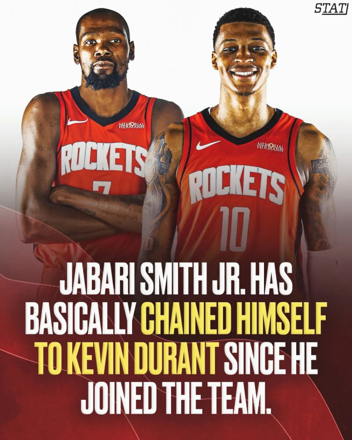 It is worth mentioning that Smith Jr. is also a young player who is very willing to learn. After Durant joined the Rockets, Jabari Jr. almost completely tied himself to Durant.
