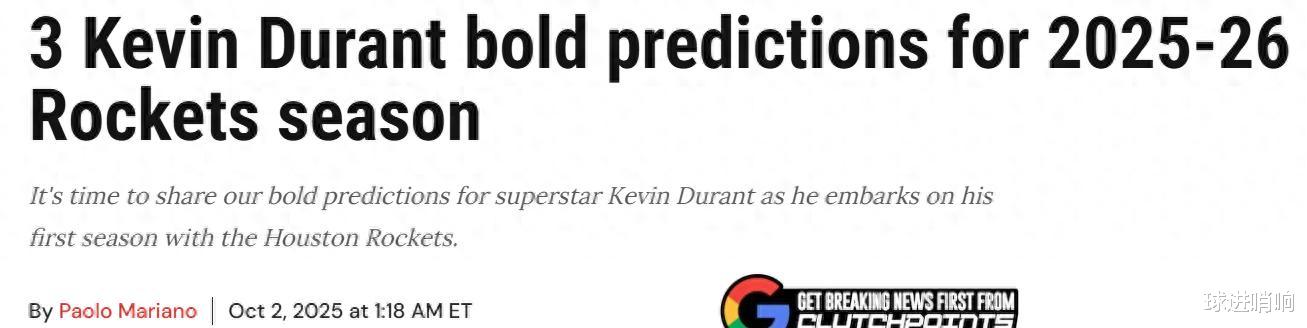 3 bold predictions! US media looks forward to the first season of Durant Rockets: Total scores surpass Jordan + hit rate