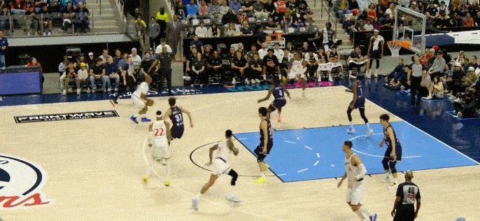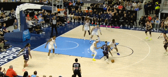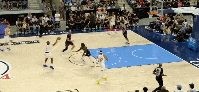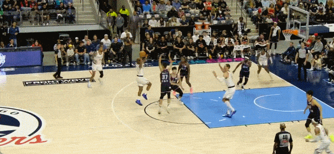 This is a three-point round after connecting the team and adding his own running without the ball. First pass it to his teammates and then find the open space to shoot the three-pointer