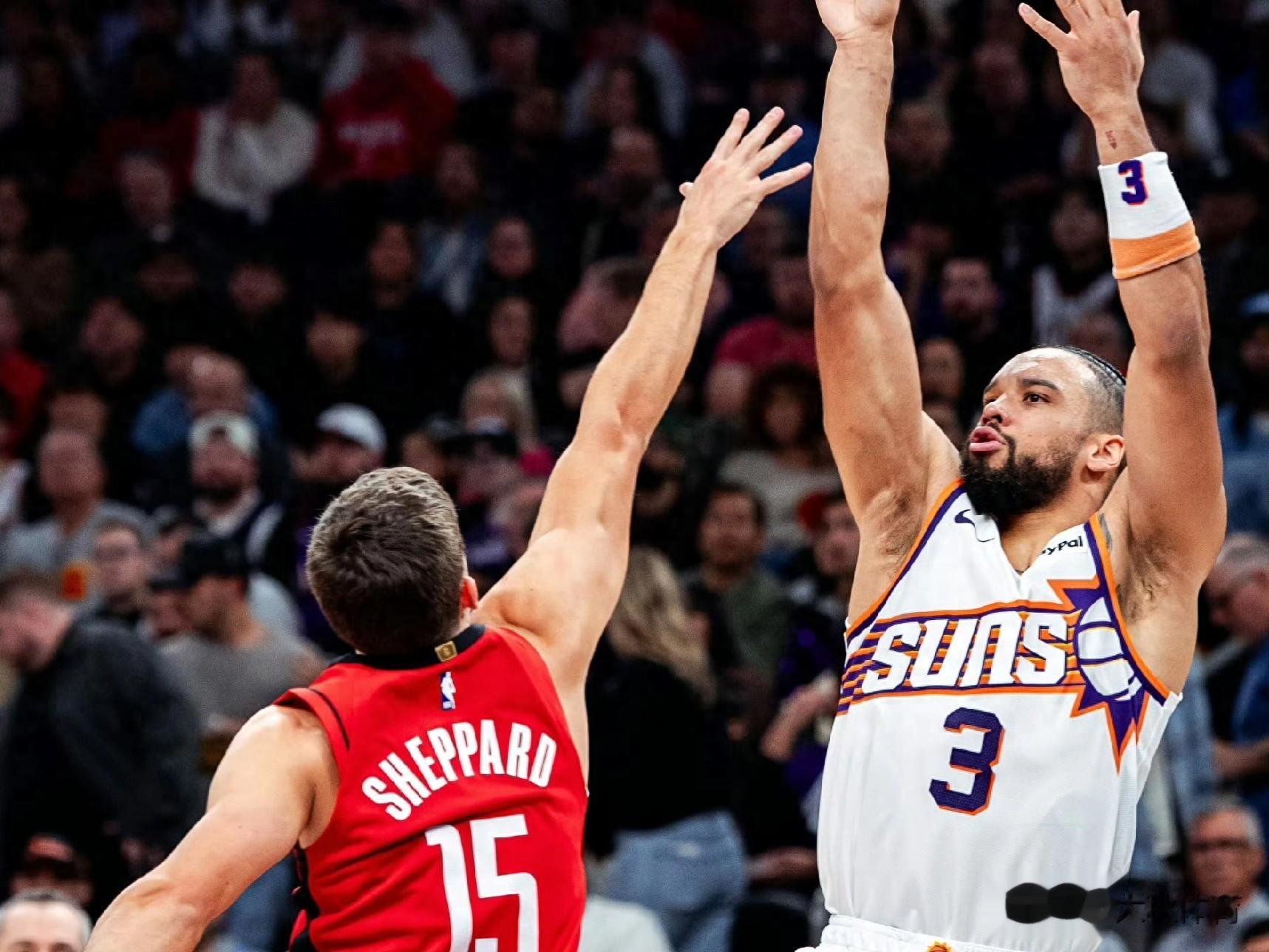In the second half, Brooks changed sides and fought again. Brooks received an assist from Booker and hit 2 points. The Suns took the lead in scoring. Sheppard immediately responded with a three-pointer and the Rockets stabilized the rhythm. Goodwin made a mistake and was intercepted by Okogie. Amen counterattacked and made a layup, and the point difference was reopened. Booker hit a pull-up three-pointer + broke through and drew a foul and made two free throws. Brooks followed up with a three-pointer and the Suns shot 8-0 to narrow the point difference. Shen Jing scored in the low post, and Jabari Smith Jr. scored 4 points in a row with a tip-in and mid-range shot. The Rockets once again took control of the situation. Gillespie broke through for a layup and free throws to chase the point, Holiday hit a three-pointer from the top of the arc, Booker scored on a breakaway throw, and Shen Jing grabbed the offensive rebound and hit a second attack. After three quarters, the Rockets still led the Suns by 9 points 84-75.
