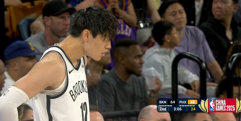 With 3 minutes and 06 seconds left in the first half, Chinese player Zeng Fanbo came on the court wearing the Nets No. 12 jersey and finally made his NBA preseason debut. The fans at the scene cheered and cheered for him. Zeng Fanbo fouled Booker and sent his opponent a free throw. Then he grabbed the ball and knocked down Dillon and fouled again. After halftime, the Nets led the Suns 71-59 by 12 points.