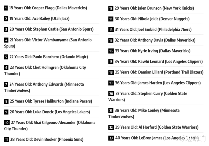 As the regular season is about to start, the US media "Fadeawayworld" announced the list of the best current NBA stars of all ages based on ability and status. Among them, the 37-year-old Curry defeated Durant, and the three top picks of the Mavericks were all selected.