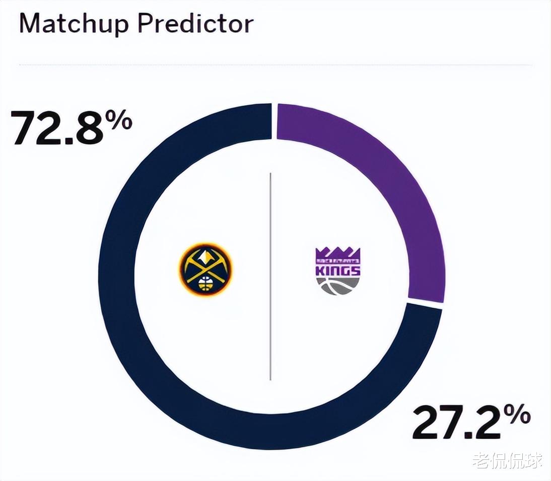 For comparison, after the Nuggets introduced Davaran, Johnson, Bruce Brown and other reinforcements this season, the team's substitute lineup has finally been enriched. Currently, with a record of 7 wins and 2 losses, they have won 4 consecutive victories and ranked third in the Western Conference. The former championship team is back. Before the game, the US media ESPN predicted this game. The Nuggets have an absolute advantage with a winning rate of 72.8%, while the Kings have a winning rate of only 27.2%.