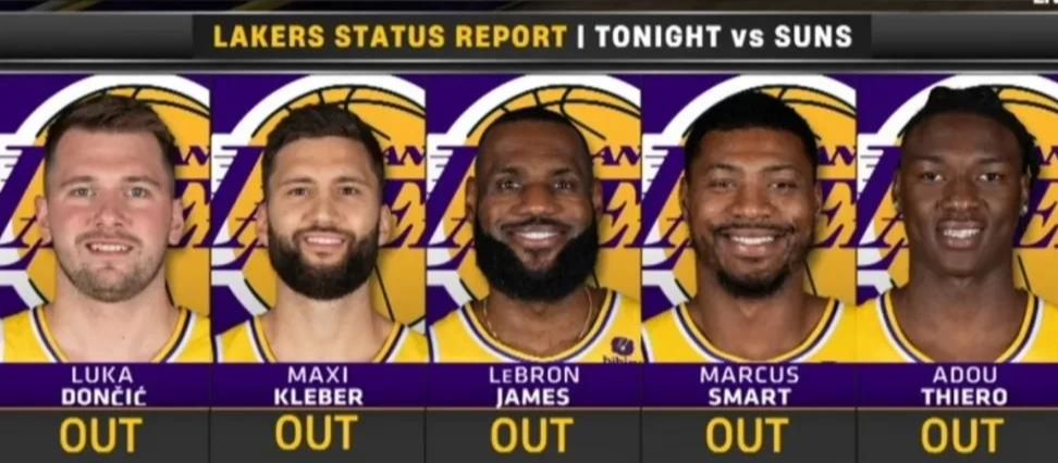 Let's take a look at the latest situation of both sides. In terms of the Suns, center Ma Wei and Jaylen Green are unable to play, while in terms of the Lakers, they almost missed a starting lineup.
