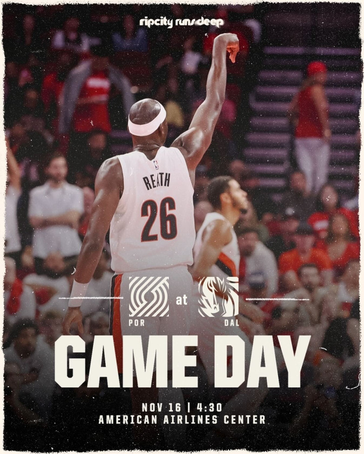 Official ins report of the Trail Blazers. Game Day Comes to Dallas 🫡🏀 #RipCity (Portland Trail Blazers) vs. Dallas Mavericks 🏟 American Airlines Center 🕔 4:30 PM PDT (Nov 18, 7:30 AM) 📺KATU//BlazerVision//KUNP//RipCityRadio620