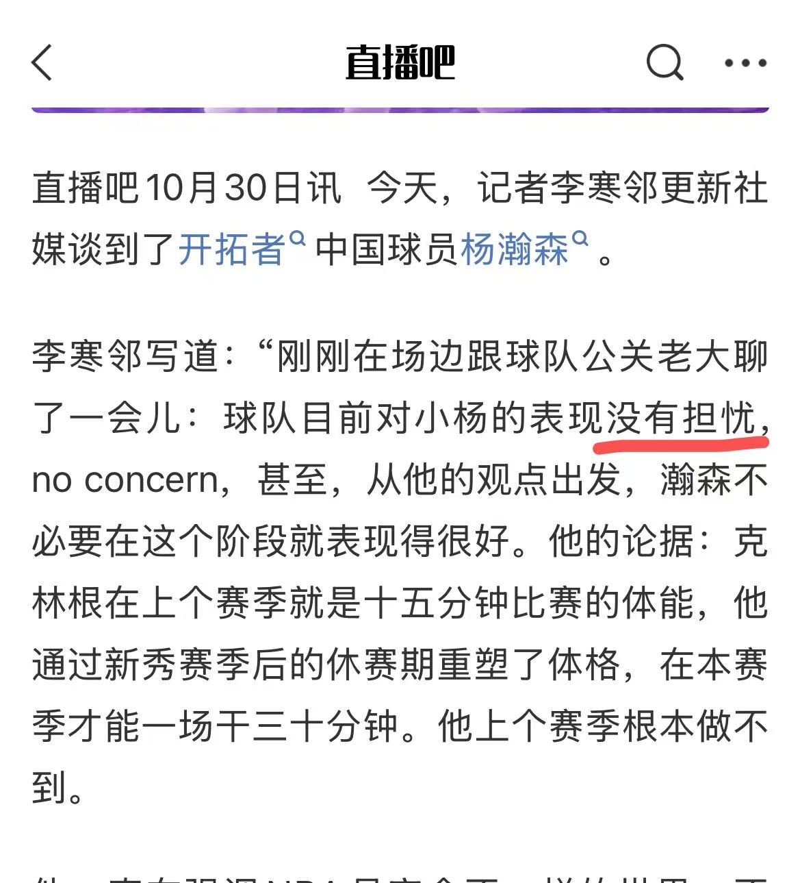 So I believe fans should be completely relieved after hearing these words. After all, Yang Hansen has at least a two-year guaranteed contract. And from the previous preseason to the current regular season, his physical fitness has improved step by step. Progress is being made continuously in all aspects, which is actually a good sign. We cannot expect him to eat an elephant in one bite. As long as he can continue to work hard and improve bit by bit, he will be able to upgrade and fight monsters in the future and become a very good Chinese star.