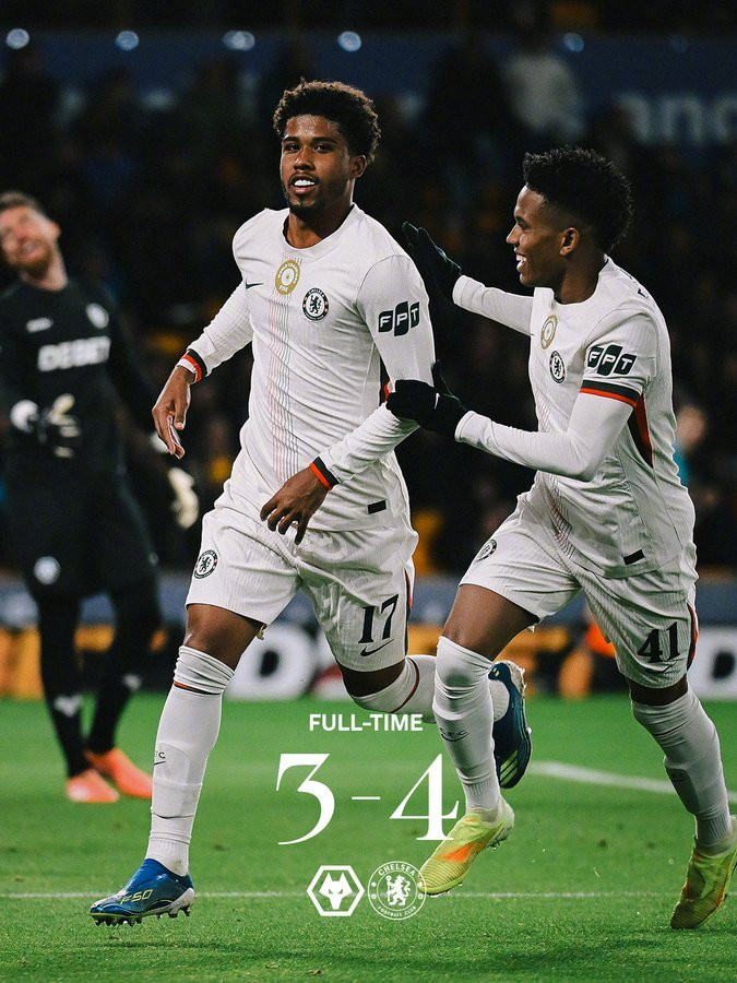 Chelsea scored in the 5th minute. Santos opened the scoring with a long shot. Subsequently, George outflanked and pushed the ball into the empty goal. Esteban scored with a shot in the 41st minute to expand the score. Chelsea led by 3 goals at halftime. However, the Wolves did not give up and launched a sharp attack in the second half. Arokodare pushed and scored to get a goal back. In the 73rd minute, Wolfe scored with a volley shot. Subsequently, Delap fouled and was sent off. In the 89th minute, Gittens scored again to widen the gap. Although Wolfe scored at the last minute to narrow the gap. But time was running out and the Wolves failed to score again. The final score was settled at 4-3, and Chelsea eliminated Wolves.