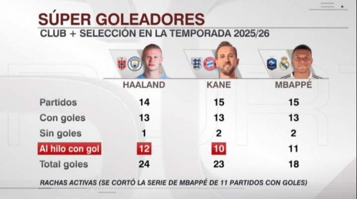 Currently in the Champions League scorer list, Kane and Mbappe are tied for the top spot with 5 goals, while Harland is tied for third with Rashford and Gordon. In addition, Kane has scored 20 goals in club competitions, becoming the first player in the five major leagues to score 20+ goals this season, and it only took 12 games.