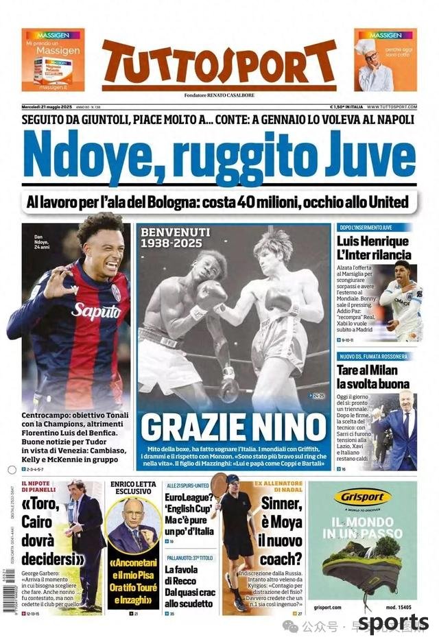 1. Endoye, Juventus' roar. Genetoli is following, Conte really likes him, and Naples thought about signing him in January. Working hard for the Bologna winger: He wants 40 million, beware of Manchester United. As for the midfield, Tonali is the goal after ensuring the Champions League, otherwise Benfica's Florentino Luis. Good news for Tudor against Venice: Cambiaso, Kelly and McKenny train with the team.