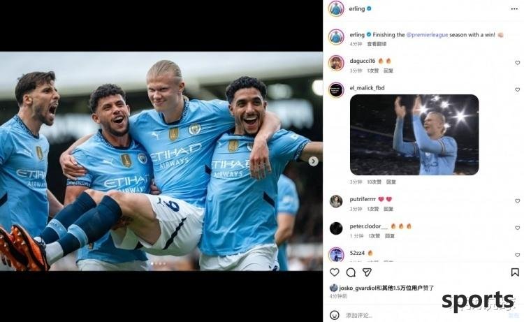 After the game, Haaland posted a photo of celebrating with his teammates Malmush and others on social media, and wrote: "End this season's Premier League with a victory!" This victory not only brought a successful end to Manchester City's season journey, but also showed the team's strong strength and fighting spirit.