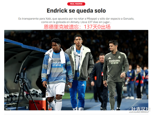 Real Madrid's 5-0 victory over Almaty Keilat in the Champions League is the best explanation. Mbappe scored a hat trick. In the 80th minute, Alonso replaced three players in a row, Guerre, Joan Ammeni and Mbappe left, and Bellingham, Camavenga and Gonzalo Garcia made the appearance. Even if it was a "bad food", Alonso did not give Enderick a chance.