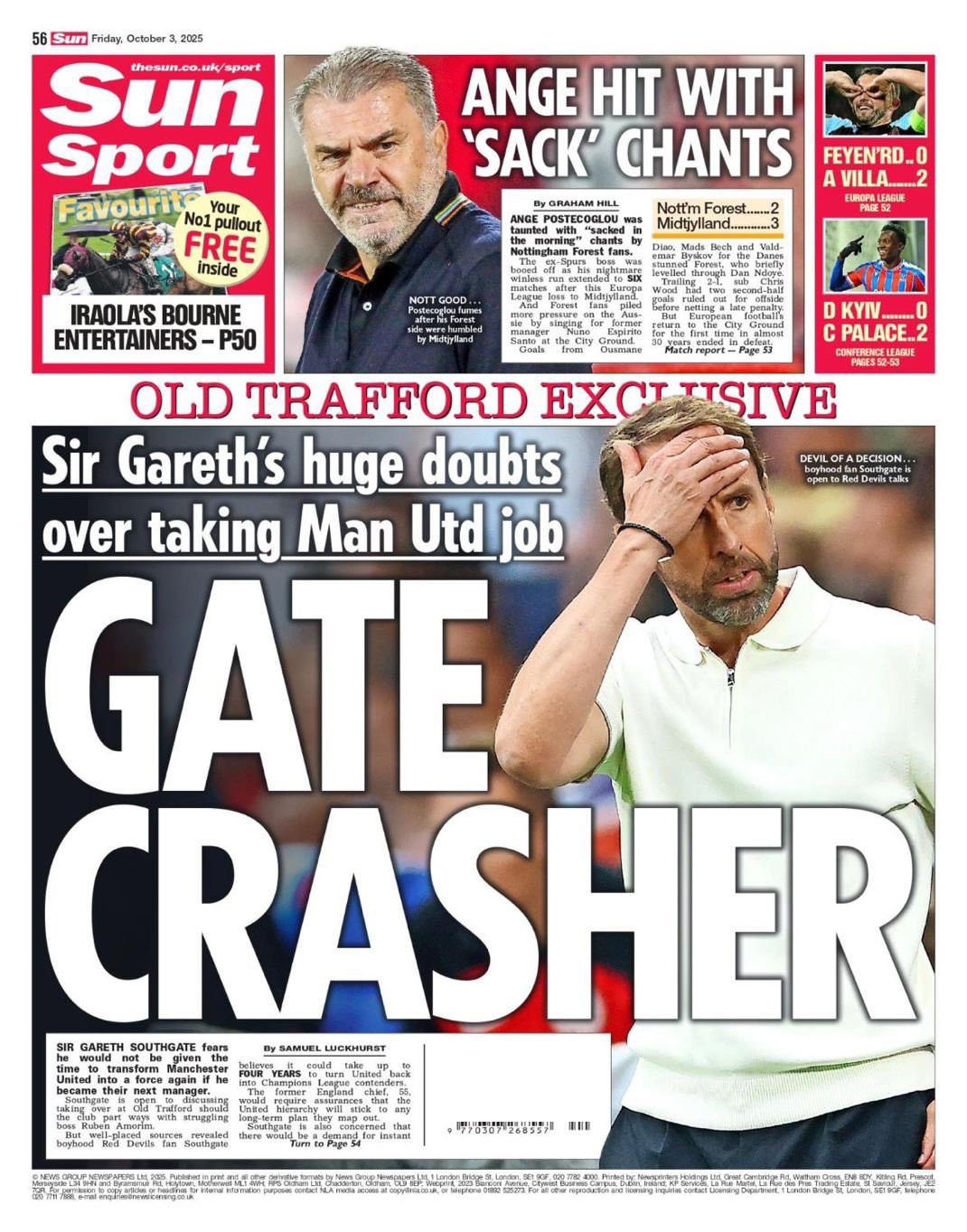 Southgate is sure not to coach Manchester United! Manchester United is too disappointing, Ferguson would rather go to the concert
