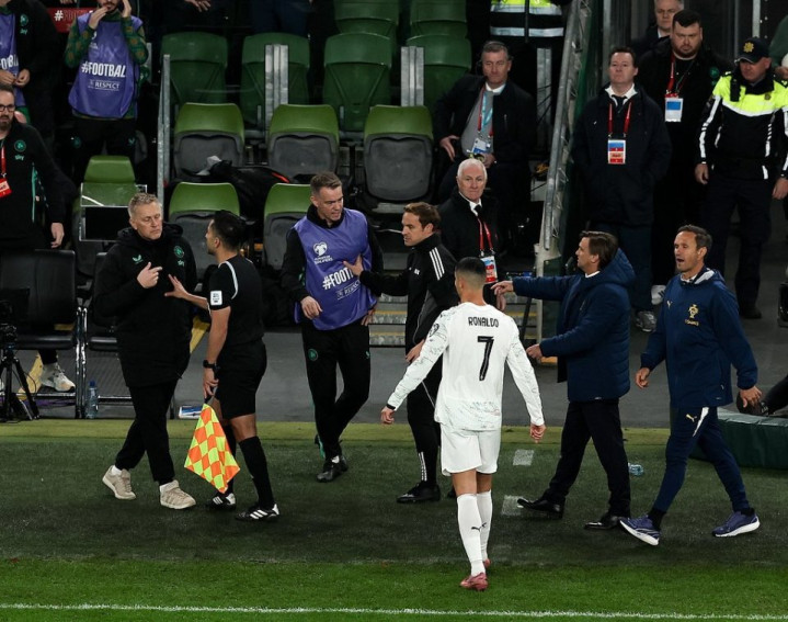 This scene happened in the 63rd minute of the game. At that time, Portugal was already 0-2 behind. Ronaldo, who was a little impatient, was dissatisfied with his opponent's defensive actions when fighting for position in the penalty area during the attack, and directly elbowed the Irish player in retaliation, and the Irish player immediately fell to the ground in pain.
