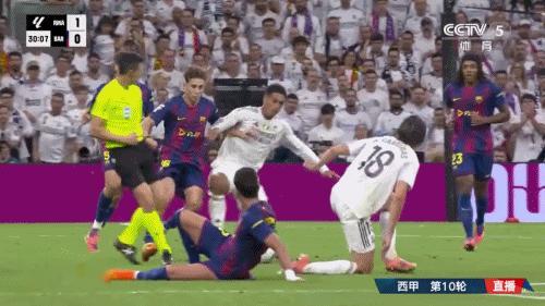 This is the midfielder fighting in the El Clasico against Real Madrid. How many fouls have been committed in 10 seconds?