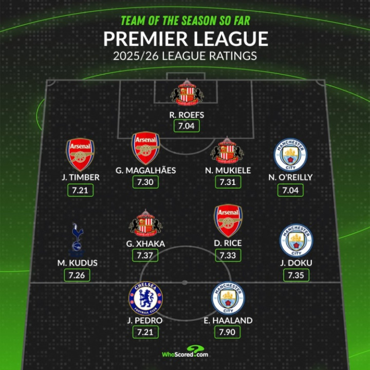 November 11th WhoScored listed the best lineups in the Premier League so far this season based on the players' points per game. Haaland, Joao Pedro, and Rice are on the list.